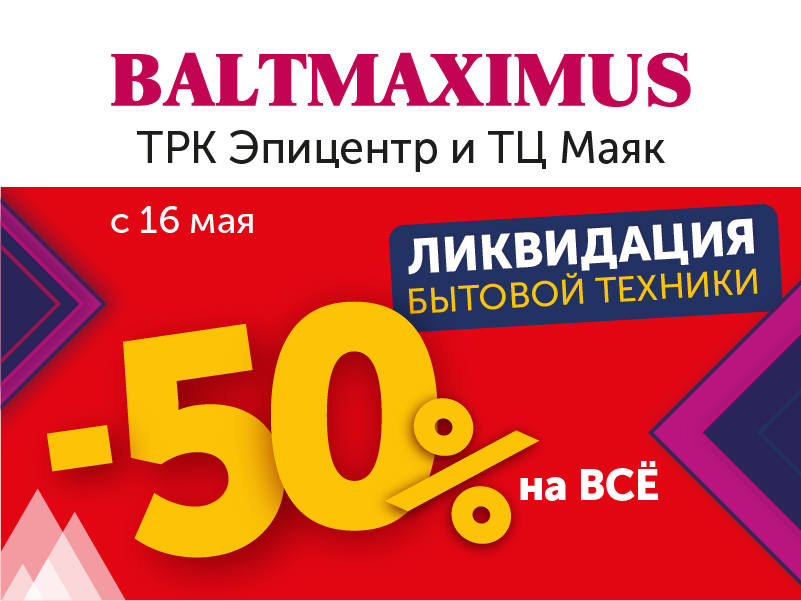 Скидка 50% на всё! Ликвидация бытовой техники в BALTMAXIMUS с 16 мая 2025 года.