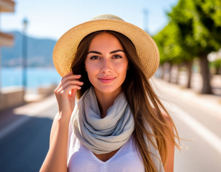 В жаркую погоду волосы требуют особого ухода: используйте защитные спреи с УФ-фильтрами, маски для восстановления поврежденных волос и легкие сыворотки для придания блеска. Не забывайте о шляпах и платках — они помогают защитить волосы от солнца!
