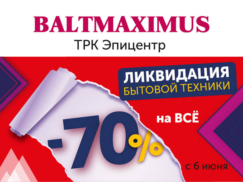 Сообщаем, что сеть магазинов бытовой техники BALTMAXIMUS закрывается. В связи с этим мы объявляем финальную распродажу — все товары со скидкой 70%!