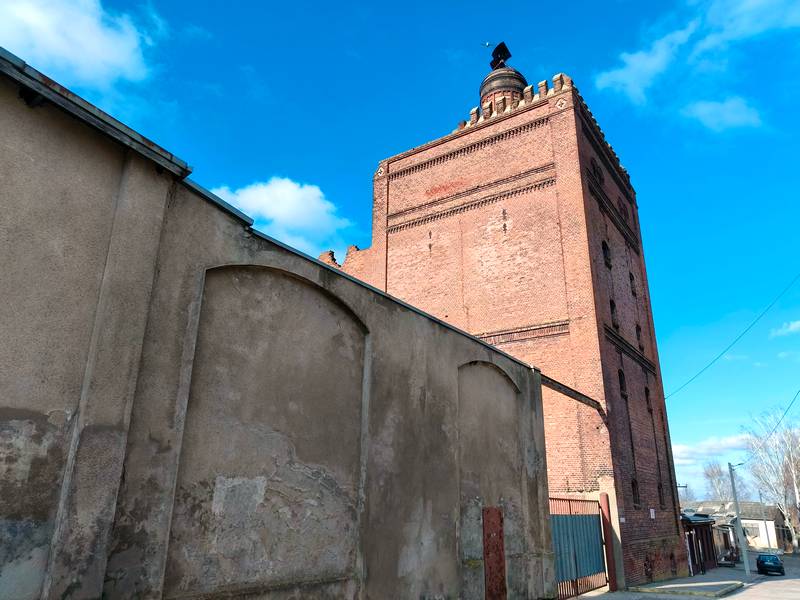 3. Башня пивоварни на улице Красной. Сюда можно прийти пешком — порядка 700 метров от моста. Есть пивная, где можно покушать.