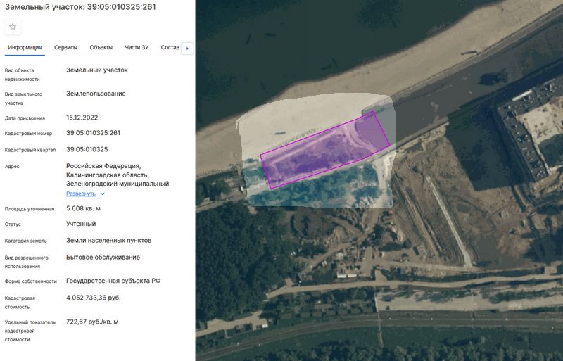 Эта захватывающая история начинается с того, что участок на авандюне у Западного пляжа был оформлен в региональную собственность в мае 2021 года. А в декабре 2022 года его уже отмежевали как самостоятельный массив с кадастровым номером 39:05:010325:261 площадью 5,6 тыс. кв. м.
