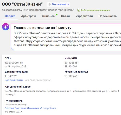 По данным ФНС (bo.nalog.ru), «Соты жизни» по итогам 2023 года показали убыток в 5 тысяч рублей и нулевую выручку, по итогам 2025 года – уже 7,6 млн убытка. Балансовые активы отрицательные: минус 12 миллионов рублей. Классическая компания-пустышка: она есть, но никакой экономической деятельности не ведёт.