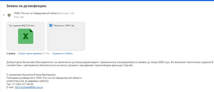Под видом реквизитов на заключение договоров, например, на проведение дезинфекции, рассылаются вирусы. Сообщается, что жертвами злоумышленников становятся чаще всего владельцы почтовых ящиков на mail.ru и yandex.ru.