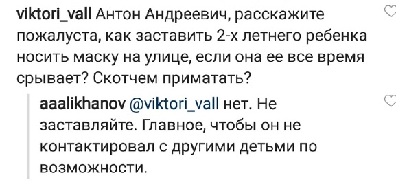 Губернатор Калининградской области Антон Алиханов разрешил родителям, «не приматывать» скотчем маски на лица детей*.