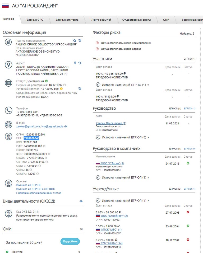 По итогам 2020 года выручка компании с датским капиталом составила 725,9 млн рублей, чистая прибыль - 136,7 млн рублей. Занимаются выращиванием озимых пшеницы, рапса, кукурузы, картофеля, имеют молочную ферму с 800 дойными коровами, судя по информации на сайте предприятия.