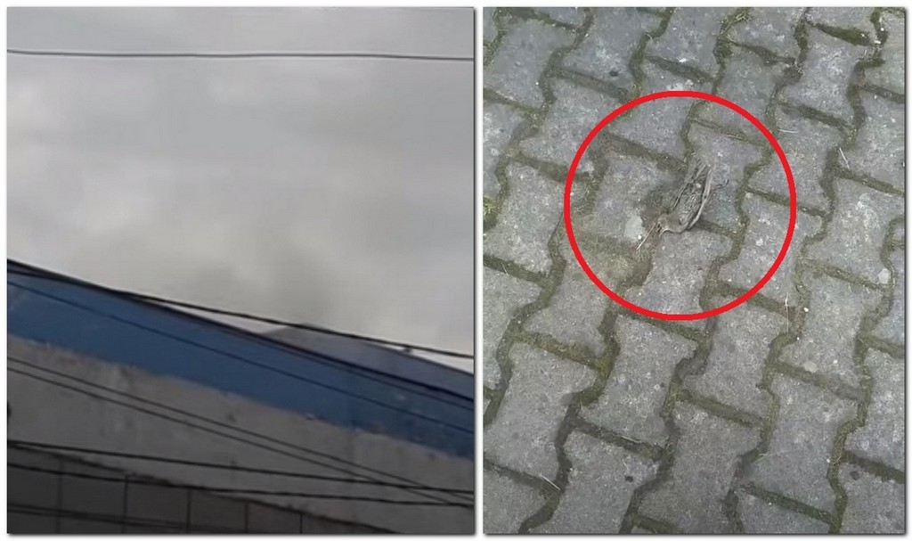В кадре – тротуар, на котором лежат мёртвые, ещё не начавшие разлагаться птицы.