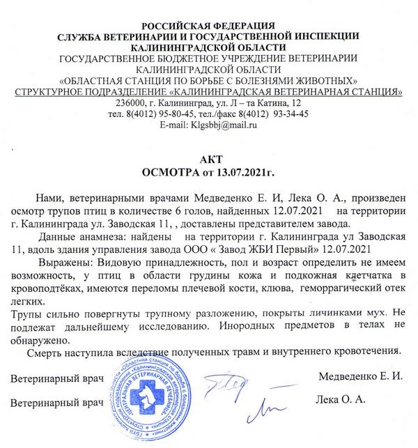 В понедельник, 12 июля, в паблике района появилось видео с мёртвыми птицами, лежащими под стенами, якобы, того же предприятия.
