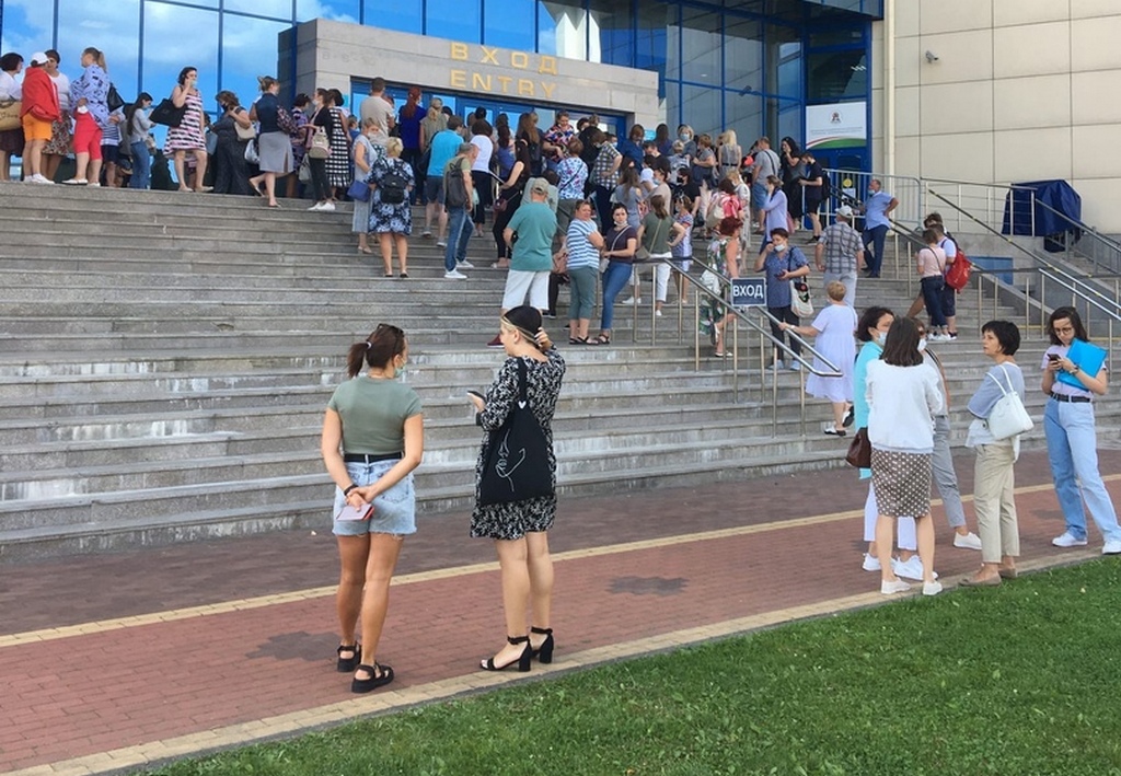 Вакцинация педагогов от коронавируса, которая проходит на севере Калининграда в пятницу 30 июля, вылилась в очереди у дворца спорта «Янтарный». Очевидцы сняли это на видео.