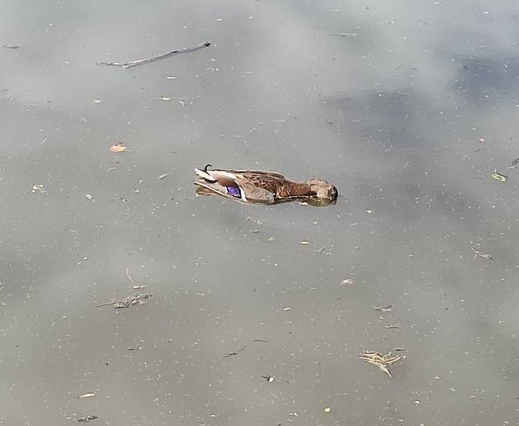 Очевидцы увидели в среду, 4 августа 2021 года, в Верхнем озере несколько мёртвых уток (точнее – селезней), которые плавали на поверхности.