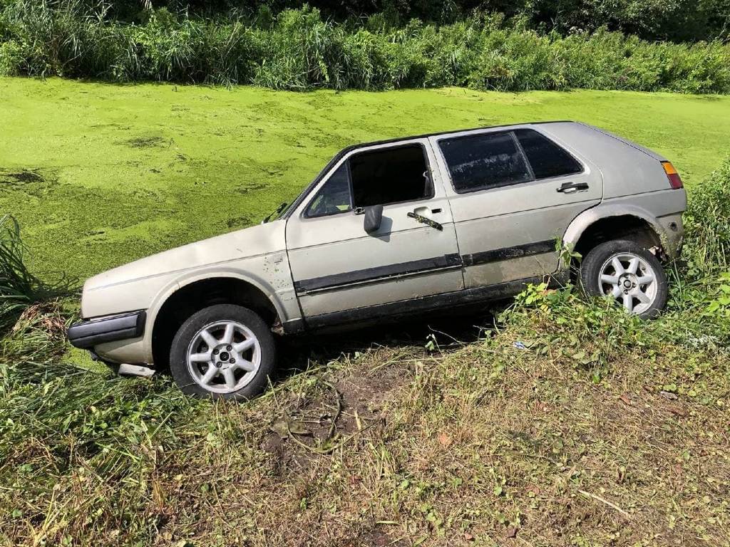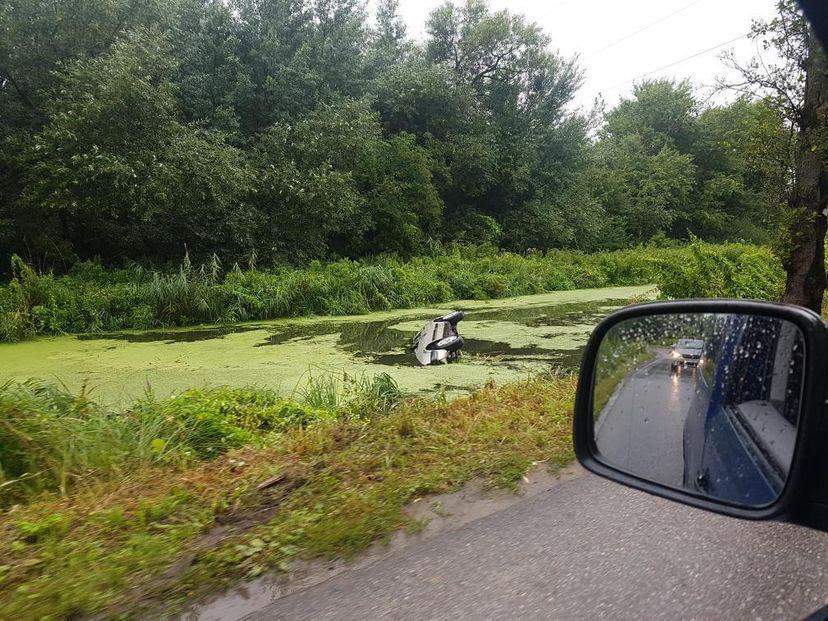 Утром в субботу, 7 августа 2021 года, в микрорайоне Прегольский в Калининграде легковой автомобиль упал в ручей.