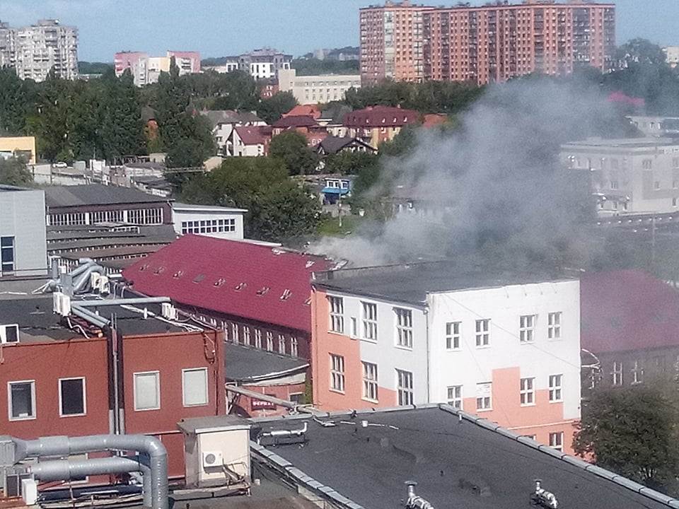 Первое подразделение пожарных прибыло к зданию в 14:32. «Русский Запад» опубликовал информацию о происшествии на полчаса раньше.