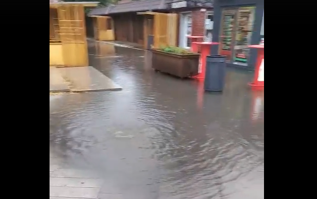 В Зеленоградске затопило реконструированную в 2020 году привокзальную площадь.