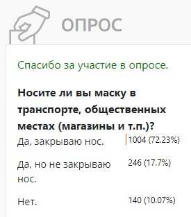 10% ответили твёрдо «нет». Маски не носят и, судя по всему, и не хотят (опрос был, как всегда, анонимным).