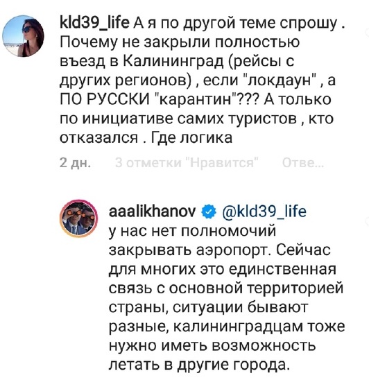 «А почему туристам не запретили приезд в Калининград?» - один из часто задаваемых сейчас вопросов в инстаграм губернатора Антона Алиханова.
