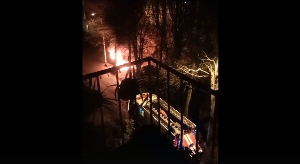 Очевидцы сняли на видео пылающую в огне «Хонду» в Калининграде