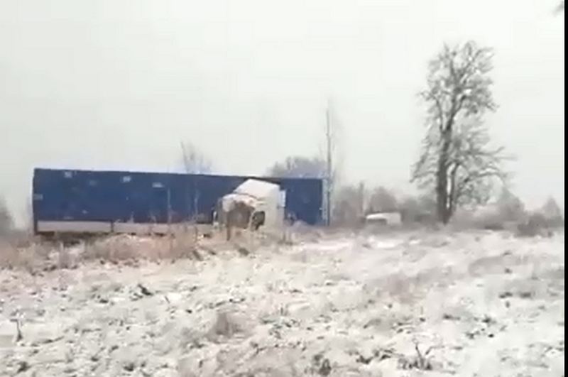 Очевидцы с места аварии сообщают о прибывших автомобилей скорой помощи, пожарных МЧС и ГАИ. От удара фура съехала в кювет.