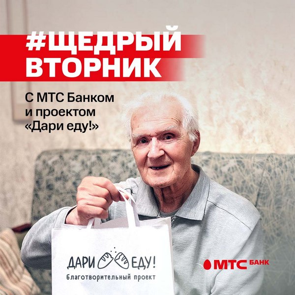 МТС Банк традиционно принимает участие в глобальной инициативе и запускает социально-благотворительную акцию в официальных аккаунтах социальных сетей совместно с Благотворительным фондом «Дари еду!». Любой пользователь социальных сетей может принять участие – достаточно поставить лайк и/или сделать репост поста к акции «Дари Еду с МТС Банком!» Каждый лайк и репост банк превратит в реальный рубль, а средства направит на проект фонда «Дари еду!» по приготовлению и доставке горячих обедов для людей, оказавшихся в трудной ситуации.