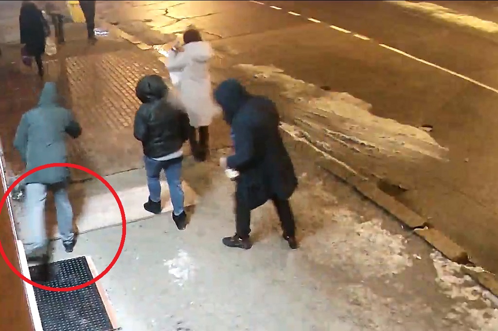 Камера сняла шедшую по улице компанию, один из участников которой несколько раз пнул ногой жестяные жалюзи закрытой торговой точки. Его знакомый с двумя бутылками спиртного и шарфом футбольного клуба «Балтика» сделал буяну пару жестов и группа гуляк направилась дальше. На другом видео, снятом там же, ещё один человек, проходя мимо железных жалюзи, также бьёт по ним ногой.