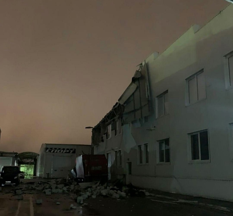 Стены нового дома не выдержали напора ветра в 25 м/с. Очевидец выложил снимок разрушений в 8.20. Только из-за того, что происшествие случилось до начала рабочего дня, никто не пострадал. Обломки упали на тротуар и грузовой автомобиль.
