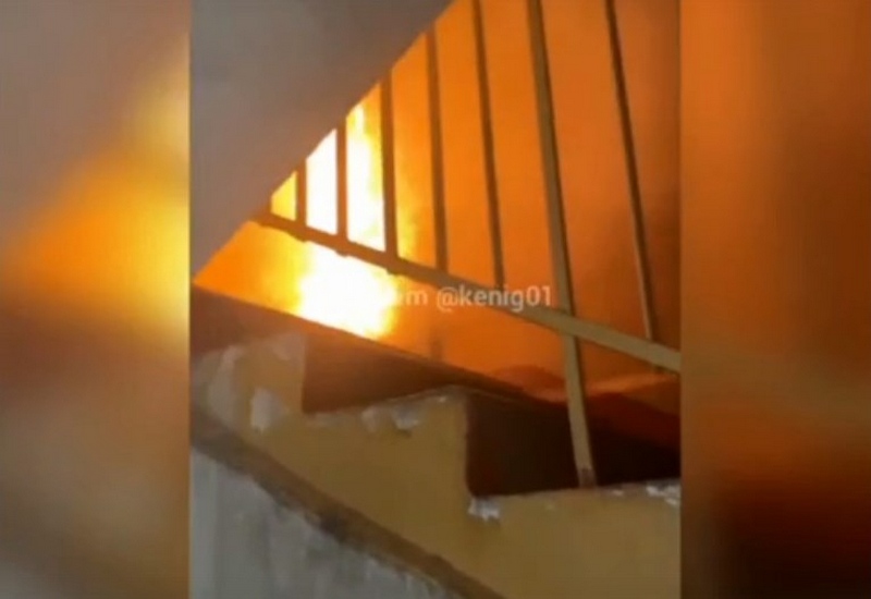 Квартира на 2 этаже в доме на ул. Артиллерийской в Калининграде случился ночью. Соседи растянули одеяло, чтобы терпящей бедствие было безопасно прыгать.