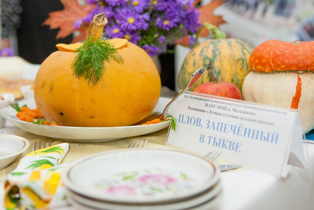 В финале участники в течение 3 часов готовили и презентовали блюда: первое или второе, салат, десерт. Обед должен быть вкусным, полезным и максимально приближенным к меню школьников. Если так, то некоторых учеников кормят, как в ресторане. Среди блюд был, например, плов в тыкве.
