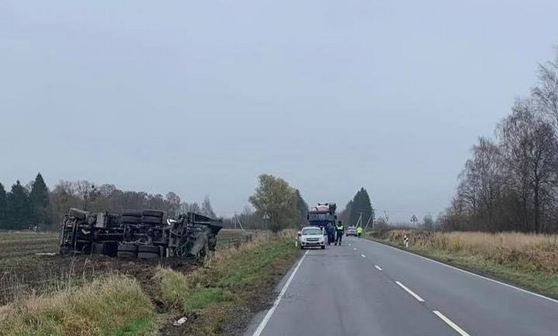 В воскресенье, 13 ноября 2022 года, недалеко от посёлка Саранское в Полесском районе в 10:30 перевернулся автобетоносмеситель «Ивеко».