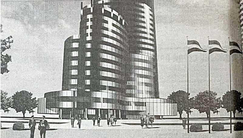 В Калининграде показали проект торгово-развлекательного центра «Европа» в виде небоскрёба. Шокирующую концепцию архитектора Олега Копылова опубликовали областной госархив.