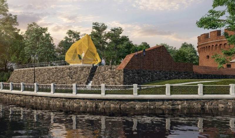 Неотъемлемой частью проекта должны стать освещённые пешеходные дорожки с вращающимися креслами, а также небольшой променад надо рвом за Росгартенскими воротами. Ещё одна особенность концепции – инсталляция в виде огромного полого куска янтаря.