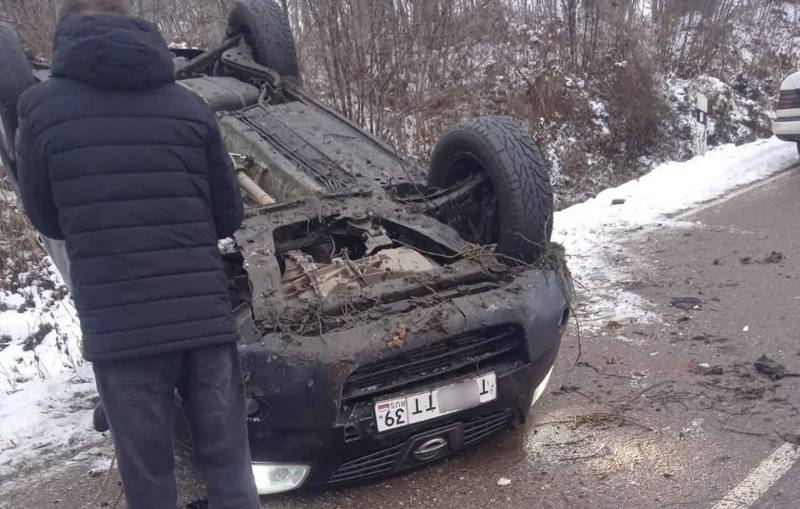 В Озёрском районе у посёлка Ушаково в воскресенье, 11 декабря 2022 года, не вписался в поворот и перевернулся «Ниссан».