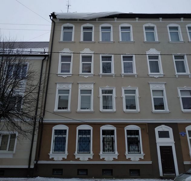 Жители Советска вынуждены спасать себя и других прохожих от падающего с крыши дома на ул. Рабочая, 18 снега.