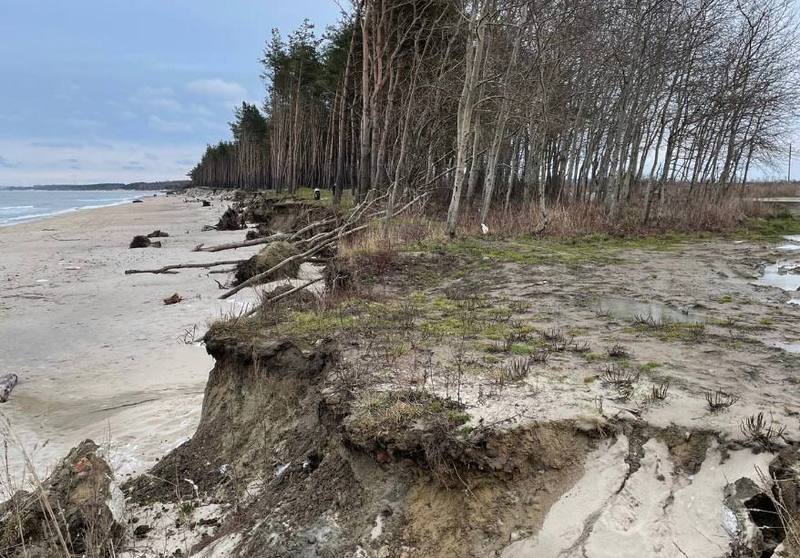 После штормов на Балтийском море в Куликово в Зеленоградском районе повалило несколько десятков сосен.