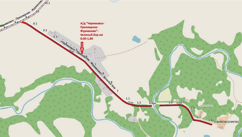 В Черняховском районе будет уложен асфальт на дороге протяжённостью 1,8 километра, соединяющей трассу Черняховск – Приозёрное и Зелёный Бор через Лесное. На ней же находится живописный мост через Писсу ещё немецкой постройки.