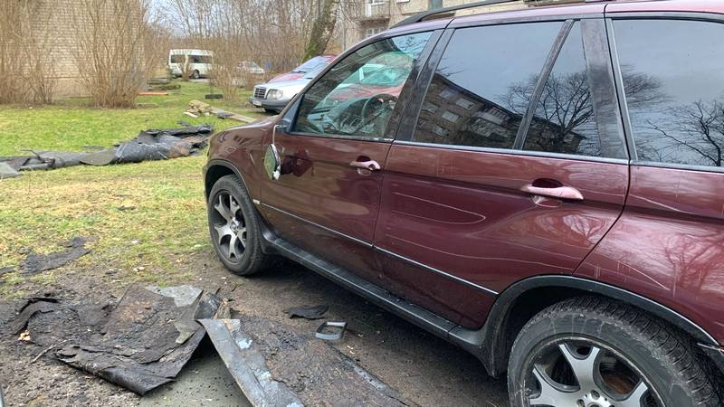 Стихия налетела на северную часть посёлка, где располагаются казармы. Тяжёлые листы рубероида оказались плохо закреплены или подмыты водой со временем и улетели вниз. На фотографиях видны повреждения как минимум двух автомобилей: «Ауди S8» (заднее стекло снесено полностью) и «БМВ X5» (боковое зеркало срезано). Ущерб, правда, носит, скорее, косметический характер, но по нынешним ценам исчисляется только для этих двух автомобилей в сумму порядка 20 тыс. рублей.