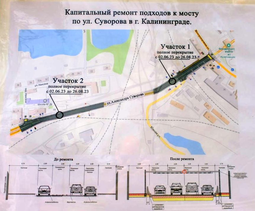 По официальному сообщению администрации, движение на улице Суворова по мосту «сделают реверсивным». Правда, для чего это делать непонятно, если из того же сообщения следует, что на мосту будет по две полосы в обе стороны движения – сейчас их три. Но, видимо, будут ещё сюрпризы.
