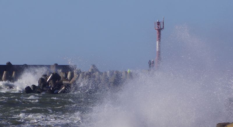 Температура воздуха во время шторма на морском побережье Калининградской области в шторм +5 º С… +7º С. В столице региона +6 º С… +9º С, скорость ветра более 19 м/с и очень сильный дождь, уровень осадков до 13,4 мм.