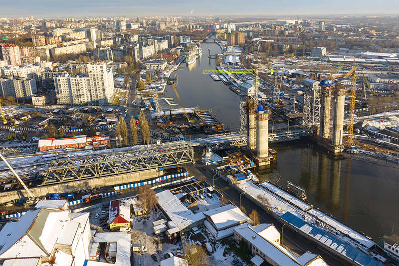 В строительстве железнодорожного моста в Калининграде рядом с двухъярусным происходит очередной знаковый этап: началась установка пролётной конструкции над Преголей.
