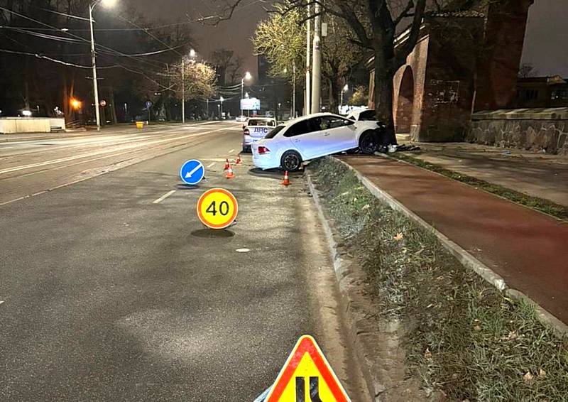 В ночь на воскресенье, 8 декабря 2024 года, весело покатались шесть человек – их «Фольксваген Поло» врезался в велодорожку и чуть не вылетел на тротуар у Верхнего озера на улице Черняховского в Калининграде.