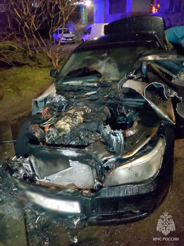 Как сообщило ГУ МЧС РФ, у машины выгорел полностью моторный отсек. Пламя чуть не уничтожило и соседний автомобиль такси, но его спасли пожарные, своевременно приехавшие для тушения на двух пожарных машинах.
