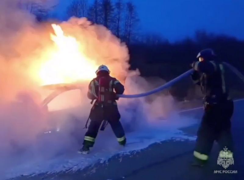 На дороге между посёлком Переславское и Круглово в Зеленоградском районе утром, около 8 часов, в пятницу, 7 февраля 2025 года, внезапно на ходу загорелся легковой автомобиль.