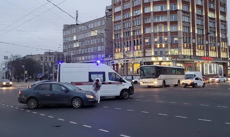 Около 8 часов на перекрёстке улиц 9 Апреля и Фрунзе скорую с мигалками не пропустил «Фольксваген».