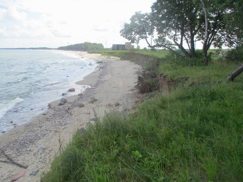 Первая фотография показывает берег Балтийского моря в районе ТСН «Морское» у Куликово в июле 2019 года: волны подбираются к незащищённому склону.