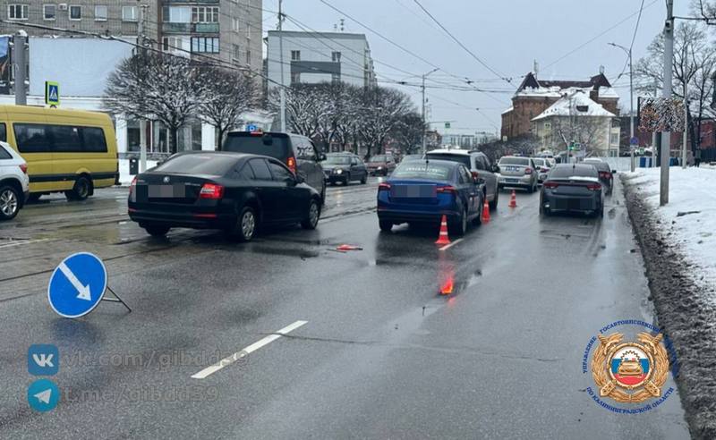 В трёх из ДТП получили травмы женщины, которые ехали в качестве пассажиров. В Калининграде в 15 часов на пересечении улиц Черняховского и Сергеева автомобиль «Шкода» (водителю 62 года) врезался в остановившийся впереди «Додж». Пострадала 37-летняя пассажирка «Шкоды» (такси).