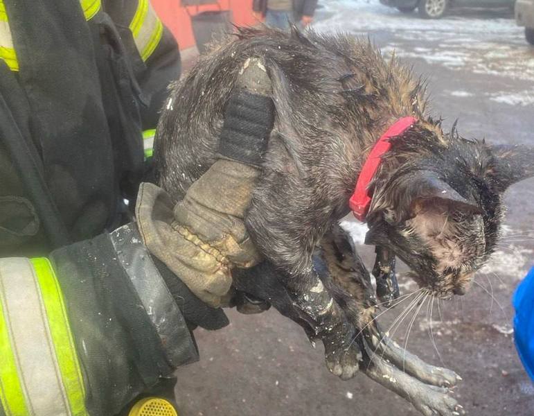 В Черняховске пожарные во вторник, 18 февраля 2025 года, спасли на пожаре беднягу кота и его хозяйку.