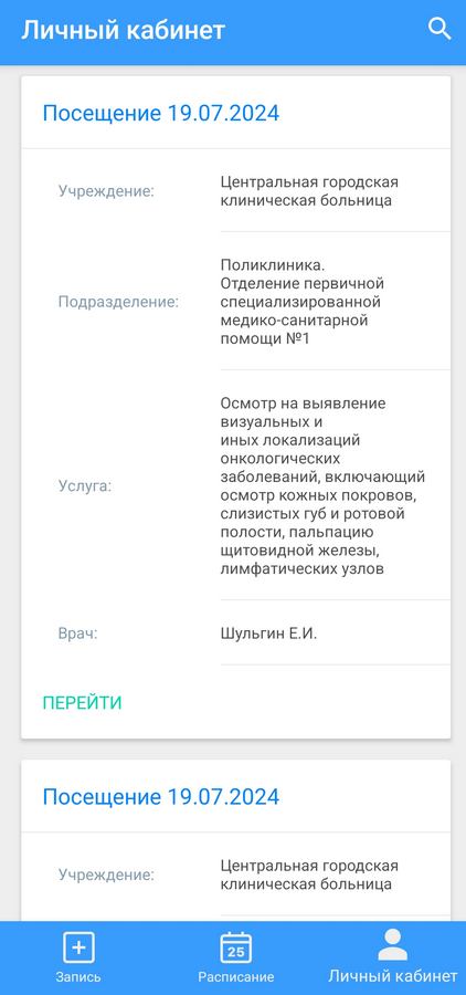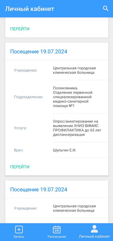 Так, пациент Алексей Ш. (фамилия редакции более чем известна) только в марте 2025 года случайно обнаружил, что он побывал в поликлинике на улице Летней, относящейся к Центральной городской клинической больнице Калининграда, в пятницу, 19 июля 2024 года. Причём, согласно «Медрегу» провёл там достаточно много времени: сначала врач Е. И. Шульгин провёл антропометрические исследования, потом измерил артериальное давление, потом провёл опрос/анкетирование на «выявление ХНИЗ ВИМИС ПРОФИЛАКТИКА до 65 лет» в рамках диспансеризации. На этом медицина не успокоилась, и врач, ну, если верить записям, даже ощупывал у Алексея Ш. щитовидную железу, лимфатические узлы, осмотрел кожные покровы, слизистые губ и ротовой полости.