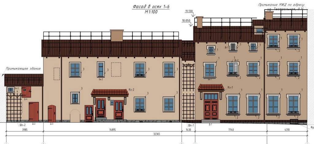 В цокольной части дома будет очищен бутовый камень, облицовка оставшейся части будет исполнена в кирпиче. Также появятся новые двери и козырьки над подъездами – по историческим мотивам.