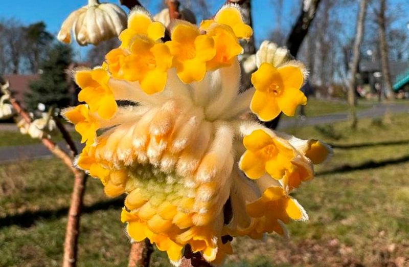 Четыре азиатских растения с англоязычным названием прижились в парке курортного городка в 2023 году. Эджвортия славится кремовым ароматом и крупными соцветиями.