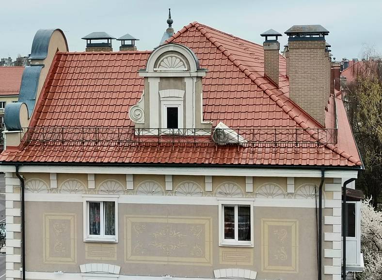 По данным «Русского Запада», отклеился из-за непогоды (возможно, сильных ветров) декоративный элемент на крыше дома №19 по улице Театральной, в самом что ни на есть туристическом центре.