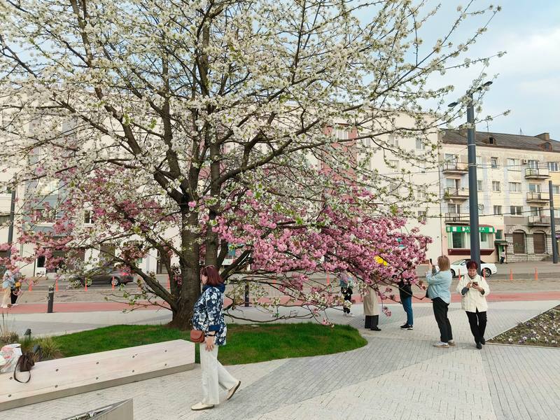 Словно двое влюблённых стоят два дерева на Ленинском проспекте у Дома искусств в Калининграде и каждый год притягивают сотни людей в период цветения.