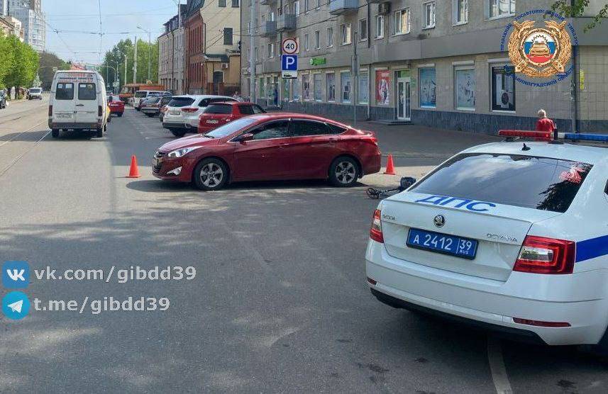 Как сообщает ГАИ, в четверг, 24 апреля 2025 года, в 11:10, на улице Багратиона у дома №79 водитель легкового автомобиля марки «Хёндэ i40» сбил при выезде с улицы Мл. лейтенанта Ротко 9-летнего школьника, ехавшего по проезжей части на самокате. Пострадавшего направили в больницу.