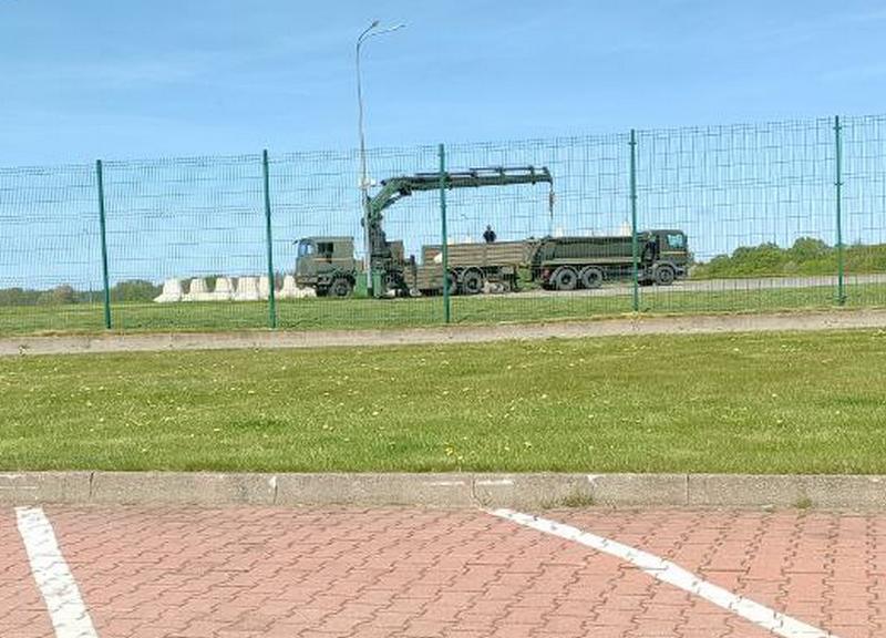На польской стороне у погранперехода Гжехотки — Мамоново-2 с армейских грузовых машин сгружали бетонные тетраэдры, которые используются как противотанковые заграждения.